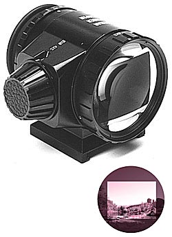 The zoom finder fits on top of any large format camera, and may also be used hand-held. It zooms to give the perspective and cropping of different lenses, eliminating the need to change lens and camera position unnecessarily.